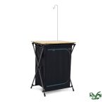 یکی از نقاط قوت این مدل، تجهیز آن به لوازم جانبی کاربردی است؛ از جمله قفسه‌ی آویزان، میله چراغ، تخته ذخیره‌سازی و کیسه‌ی نگهدارنده. این امکانات باعث می‌شوند تا میز نه‌ تنها برای پخت‌و‌پز بلکه برای نظم‌بخشی به فضای کمپ یا پیک‌نیک نیز مفید باشد. پارچه اکسفورد 600D که در ساخت محفظه‌ها به کار رفته، در برابر سایش و رطوبت مقاوم است و در سفرهای طولانی‌مدت عملکرد قابل قبولی دارد.