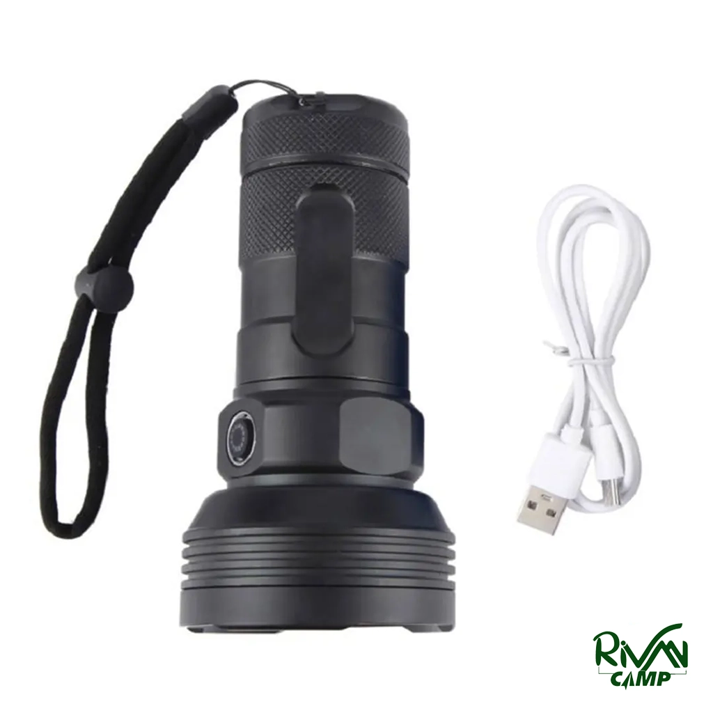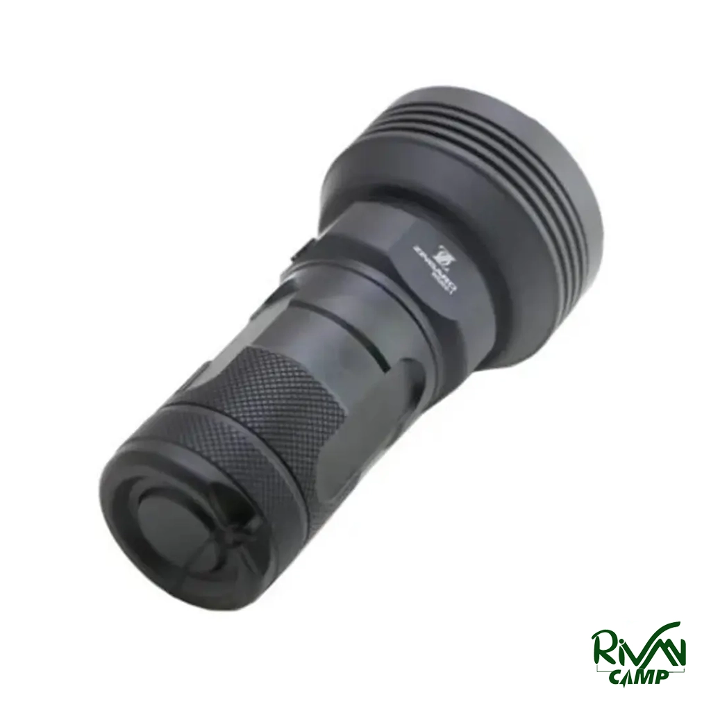 چراغ قوه Small Sun ZY-W5202 با روشنایی 5500 لومن، برد نور تا 400 متر، 5 حالت نوردهی، باتری 7800mAh با شارژ USB-C، بدنه مقاوم آلومینیومی، ضد آب و ضربه، مناسب کمپینگ و شرایط اضطراری.