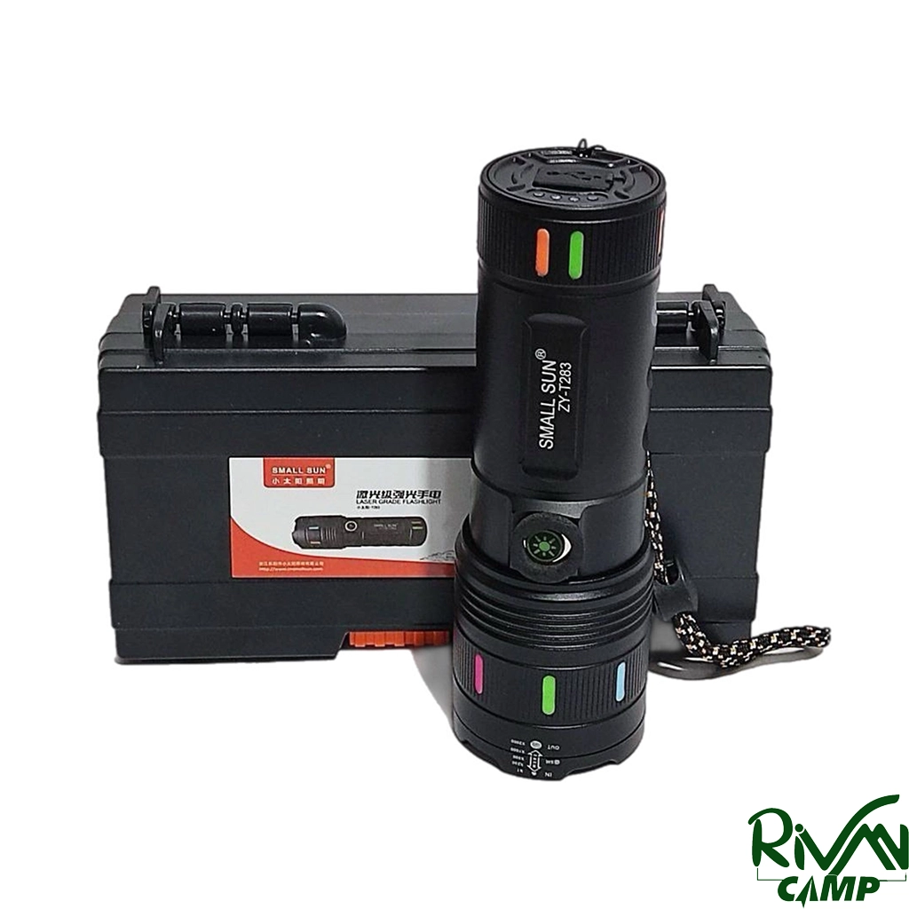 چراغ قوه اسمال سان مدل ZY-T283 دارای نور مهتابی سرد با برد واقعی تا ۱۰۰۰ متر، بدنه مقاوم از آلیاژ آلومینیوم سبک و مستحکم، باتری لیتیومی داخلی قابل شارژ با ظرفیت ۳۰۰۰ میلی‌آمپر ساعت و حالت‌های نوردهی متنوع شامل نور کم، متوسط، قوی و چشمک‌زن SOS.