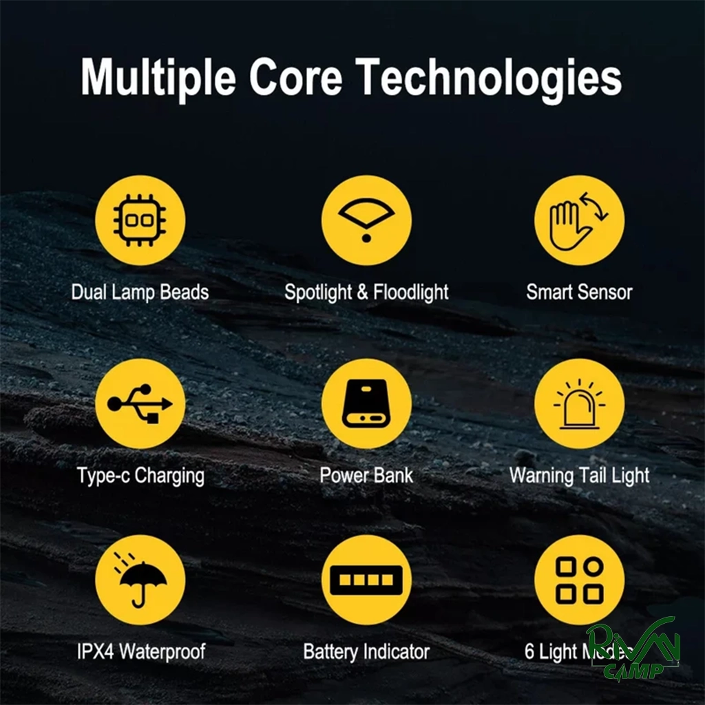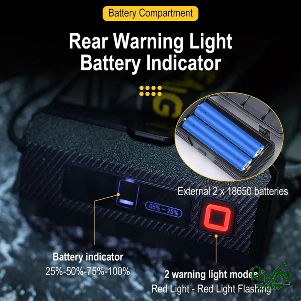 چراغ با دو باتری لیتیومی ۲۴۰۰ میلیآمپر کار میکند و بسته به شدت نور بین ۲ تا ۵ ساعت روشنایی دارد. باتری قابل شارژ بوده و همراه با سیم شارژر ارائه میشود. این ویژگی باعث میشود چراغ برای استفاده در طبیعت و شرایط طولانی مناسب باشد.