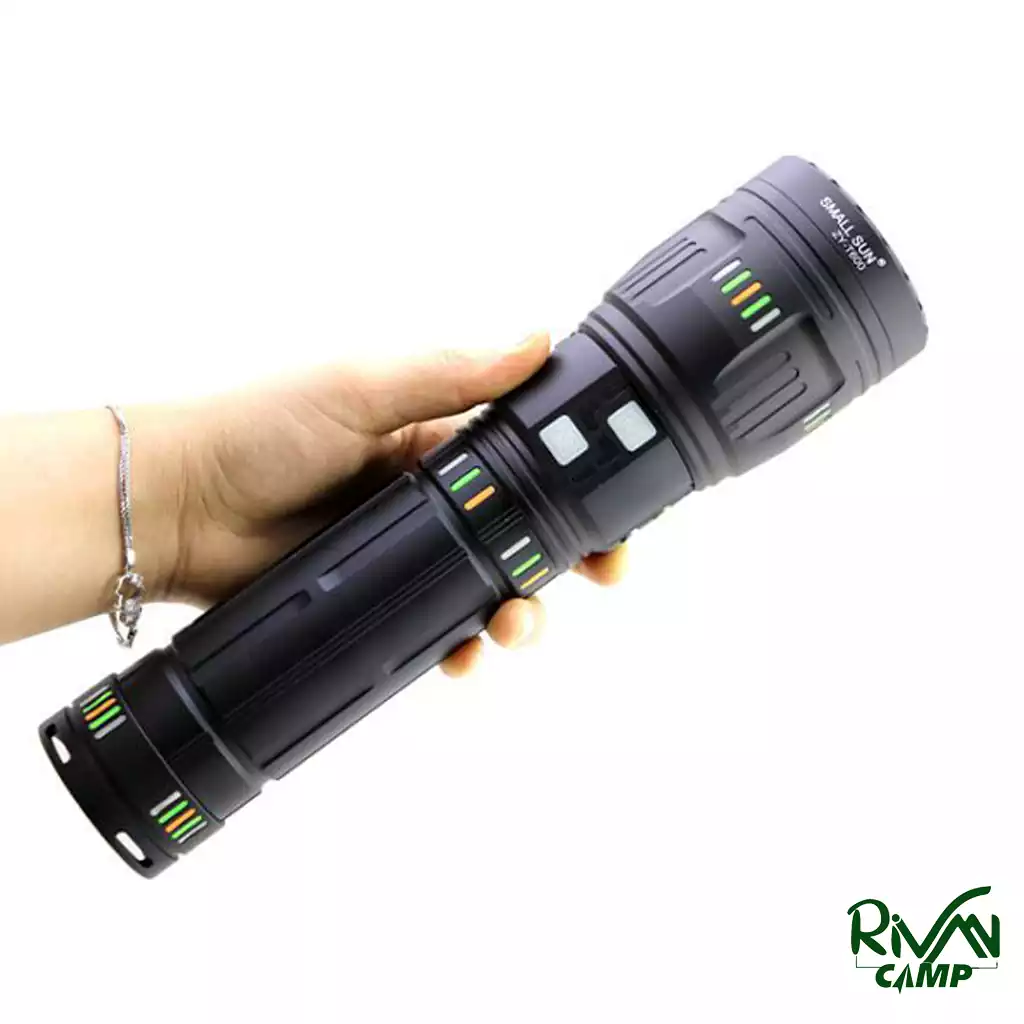 چراغ قوه اسمال سان مدل Small Sun ZY-T600 با برد نور ۸۲۰ متر، لامپ LASER LED با نور سفید یخی و ۴ باتری ۱۸۶۵۰ با ظرفیت ۴۸۰۰ میلیآمپر، ابزاری قدرتمند و حرفهای برای شکار، نگهبانی و کمپینگ است. قابلیتهایی مثل پاوربانک، ۵ حالت نوردهی، تنظیم کانون، بدنه آلومینیومی ضدآب و اتصال به سهپایه، این چراغ را به انتخابی عالی برای شرایط سخت و ماجراجوییهای طولانی تبدیل میکند.