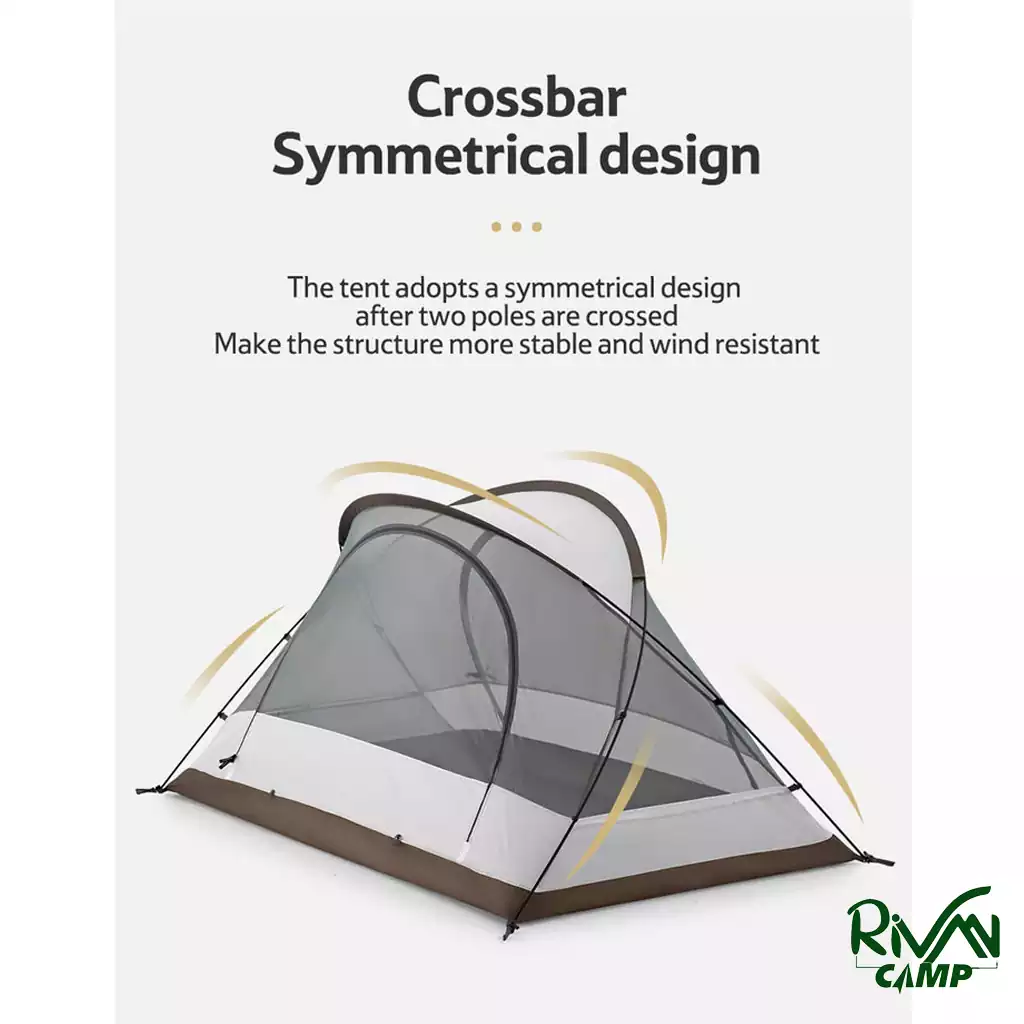 چادر دو سالن پروانهای نیچرهایک مدل NH21YW132 به دلیل طراحی پروانهای و داشتن دو سالن ورودی، فضایی جادار و چند منظوره فراهم میکند. این طراحی باعث میشود علاوه بر فضای خواب راحت برای دو نفر، محیطی اضافه برای نگهداری تجهیزات و وسایل بزرگتر مانند کوله پشتی یا کفشهای کوهنوردی وجود داشته باشد.